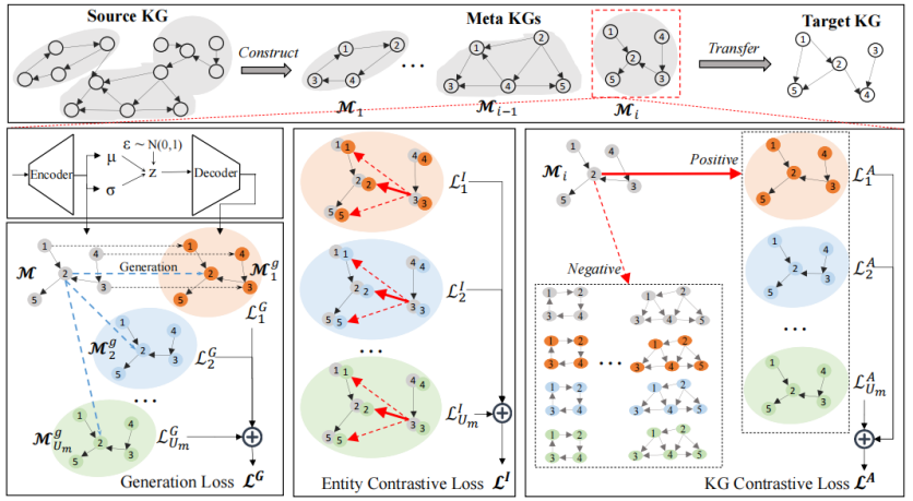 该工作面向归纳式知识图谱表示学习这一具有动态演化特征的关键问题,聚焦在源知识图谱与目标知识图谱共享关系模式约束下,模型对未见实体的泛化能力。相较于传统的传导式设置,归纳式知识图谱表示学习要求模型从源图中抽取稳定的关系模式,并迁移至目标图中的新实体,因而面临更高的迁移难度。尽管现有方法在性能上取得了一定提升,但仍受到以下关键瓶颈的制约:其一,数据稀疏性限制了关系模式的充分挖掘;其二,隐式迁移机制难以实现源图与目标图之间的有效知识泛化;其三,缺乏系统性的扩展性分析,使得模型容量对归纳迁移能力的影响尚不清晰。